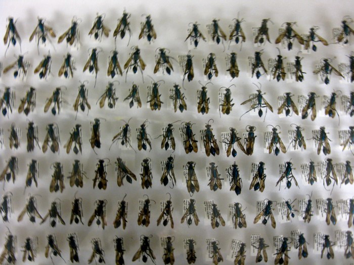 Sie reist mit Handtasche, Stiefeletten, Blusen, einer gehörigen Menge Chinintabletten, Wörterbuch, Hut und Sonnenschirm. Das Britische Museum unterstützt sie großzügig, wer die erste Reise ins Malariagebiet unbeschadet überstanden hatte, kann schließlich wichtige Exponate liefern. Tatsächlich bringt sie Süßwasserfische aus dem Kongo und dem Ogowe nach England, die dort kein Wissenschaftler kennt. War sie bis zum Erreichen der Flüsse noch auf bekannten Pfaden gereist, betritt sie nun ein Europäern noch unbekanntes Land. Sie fährt – und darauf ist sie stolz – mit langem Wollrock Kanu und sieht Dinge, die es wert sind, gesehen zu werden, wie sie schreibt. Sie reist übrigens ohne Waffen, obwohl sie sich der Gefahr, schutzlos in fremdem Territorium unterwegs zu sein, bewusst ist. Mit dem kannibalischen Volk der Fang lebt sie eine Weile. Ihre Wertschätzung der indigenen afrikanischen Menschen begründet und wiederholt sie in ihren Publikationen ausdrücklich (hier kommt es auch zu dem Kaninchen-Zitat, gegen das Vorurteil, Schwarze seien unterentwickelte Weiße). Während ihrer dritten Reise stirbt sie, nicht wie von ungefragten Männern vorhergesagt an Fieber, sondern an Typhus in einem Kriegsgefangenenlager in Simonstown bei Kapstadt, wo sie als Krankenschwester aushilft. Sie hatte acht Jahre in Freiheit gelebt und Frauen ihres Landes gezeigt, dass eine Existenz auch jenseits des Putzeimers möglich ist. Herzlichen Glückwunsch, Mary Kingsley! Insekten brachte sie ebenfalls mit von ihren Expeditionen. Die auf dem Foto sind allerdings nicht aus dem British Museum, sondern aus dem Berliner Museum für Naturkunde.