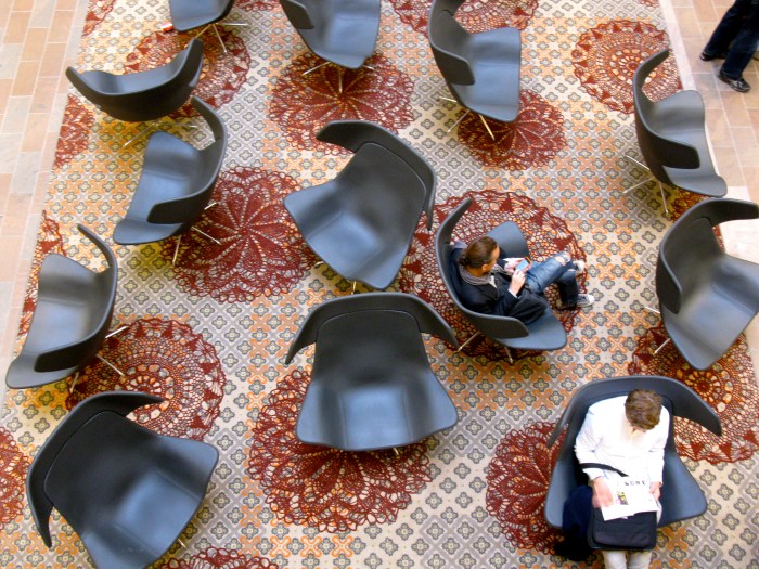 Ich dachte, die Sache sei ausgemacht. Als Lieblingsleseort galt mir mein Bett, die Lieblingslesezeit ein freier Morgen, auch die letzte halbe Stunde vor dem Einschlafen. Oder eine langsame Dämmerung mit Kerzenlicht. Aber schärfer nachgedacht, fielen mir ganz andere Orte und Plätze ein, öffentliche Räume vor allem, die mich zu Lesehöchstleistungen brachten, d.h. erstens zu Erinnerungsrekorden und zweitens zu Imaginations-glanzleistungen, Hochglanzleistungen geradezu, die darin bestanden, Gelesenes nahtlos in die (oft fremde) Umgebung zu hm, ja, was sagt man da – ? Visualisieren? Eine schöne Leseerfahrung machte ich letzten Herbst, wo ich vom Wartesaal im Flughafen bis zum Einschlafen zu Hause einen regelrechten Lesebogen geschlagen habe: Das Buch hatte mich über eine Routinereise gebracht und schenkte mir das Gefühl eines richtigen Urlaubs. Wo lese ich gerne? Um das herauszufinden, habe ich mir seit langem wieder ein Buch für unterwegs eingepackt.