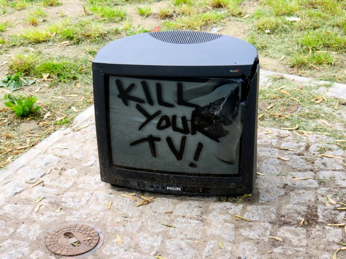 Wahrscheinlich ist es piepegal, aller Medienschelte zum Trotz, ob man mit einem Fernseher lebt (respektive mehreren) oder ohne. Dennoch habe ich ein ganz anderes Lebensgefühl, sobald ich in Wohnungen komme, in denen die Flimmerkiste (auch schon ein aussterbendes Wort?) läuft. Ich selbst habe mich vor 20 Jahren vom Fernseher getrennt. Eher umspektakulär, ich habe ihn verschenkt. Heute sind mir die Dinger meist zu laut. Das heißt, mich stört weniger das Bild als das Geräusch – oder wie sagt man zu schlechtem Deutsch untermalt mit noch schlechterer Musik? Die Sendeformate haben mich dabei längst überholt. Was mir wie Werbung für eine Show vorkommt, ist die Show selbst! Dabei, ein gemütlicher Abend mit Fernsehteller (ausgestorbenes Abendessen?) – das hatte doch was. Und gemeinsam gucken erst recht. Aber das geht ja auch in der Kneipe nebenan. Zumindest wenn Fußball dran ist. Und den gibt es zum Glück noch weitgehend ohne musikalische Untermalung.,,