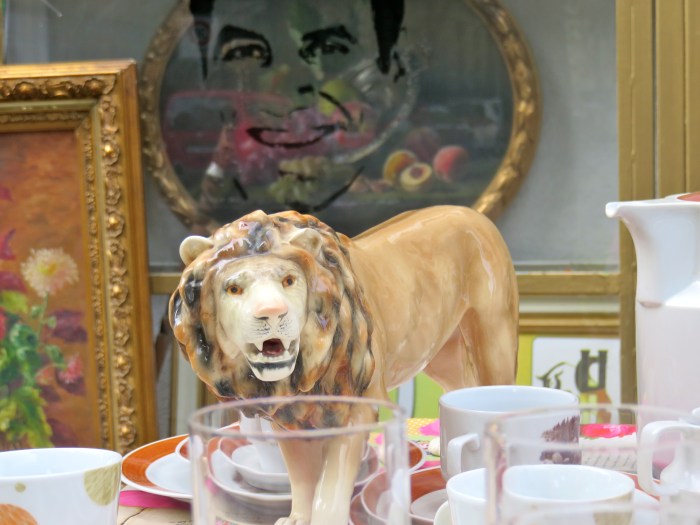 kennt wohl so ziemlich jede/r, persönlich oder als Redewendung, aber Porzellanlöwen auf dem Kaffeetisch? Vielleicht bei Damen, die gerade Diät halten (da steht er dann vor der Sahnetorte) oder beim Kindergeburtstag (obwohl ein Darth Vader aus Plastik wahrscheinlich die in jeder Hinsicht attraktivere Variante wäre). Möglicherweise ist er bei einem Frühstücksbuffet besser aufgehoben, zumindest hätte er da mehr Auslauf. Aber Tiere sind in Hotels ja grundsätzlich verboten. Ich habe ihn jedenfalls nicht gekauft. Löwen putzen sich nie die Zähne und haben unweigerlich argen Mundgeruch. Aber auf dem Rückweg schon, als ich wieder an der als Kaffeetisch dekorierten Auslage des Trödlers vorbeikam, war der Löwe weg. Hoffentlich, dachte ich, hat er sich von alleine davon gemacht. Irgendwo hin ins nächste Unterholz.