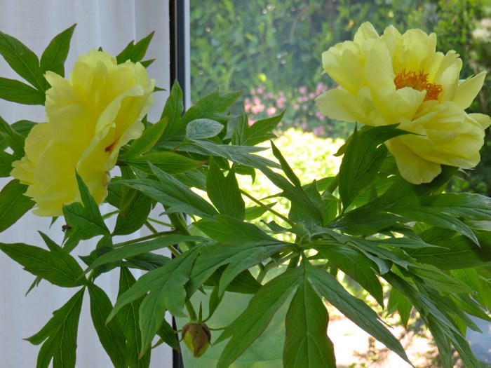 Das Brausen, der Sturm, und am besten die Zungen. Ich meine, wer auch nur Englisch gelernt hat, weiß, dass es dafür eine andere Zunge braucht. Bei Französisch ist es nicht anders – und versuchen Sie erst mal Chinesisch. Da bedarf es wahrscheinlich gleich eines neuen Mundraums. Der Babelfisch ist wohl die säkulare Variante des Pfingstgeschehens. Den muss man sich – wenn ich mich richtig erinnere – auch nur sehr prosaisch ins Ohr stecken. Aber dafür gibt es auch keine Babelfisch-, sondern nur Pfingstrosen. Mit Blütenzungen in rot, und wie hier zu sehen, in Brandgelb. Ein Wunder? Wohl kaum. Aber ein ungeheuer beglückender Anblick. Allen ein schönes Fest!