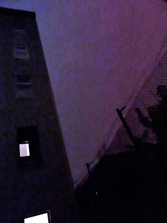 Gut ausgerüstet saß ich gestern Abend am Fenster, das Mikrofon in der einen, die Kamera in der anderen Hand, und mit einem kribbeligen Jagdfieber in den Knochen. Gibt es schon Gewittersafaries? Wahrscheinlich. Wahrscheinlich sind die auch schon ein ziemlich kalter Kaffee angesichts der Tornado-Touren, die gerade für Naturactionfilmer der Hammer sein müssen. Gewitter reichen mir da schon. Also, auf Blitz und Donner war ich aus, dazu gab es schon mal prasselnden Starkregen, wie das in der Fachsprache heißt, mein Mikrofon lief an. Wetterleuchten war in allen Farben zu sehen und hier und da schon gab es diese richtigen Wahnsinnsblitze, von denen einer schon mehr als ein paar hundert Frankensteins zum Leben erwecken könnte. Es wummerte. Und wo der Blitz sehr scharf den Himmel zerteilte, krachte es auch schon. Das Mikro lief, aber die Kamera wollte nicht. Immer wenn ich ein Himmelslicht erwischen wollte, blieb sie taub. Ich konnte drücken so viel ich wollte, die Kamera regte sich – lange – nicht, um dann den nachtschwarzen Himmel aufzunehmen. Na toll! Und je verbissener ich die Sache anging, desto weniger gelang. Schließlich wurden auch die Sounds leiser, der Regen flaute ab. kaum dass 10 Minuten Bambule gewesen war. Enttäuscht ging ich zu Bett. Um Mitternacht krachte es noch einmal, aber da war ich schon mit Morpheus zu Tisch. Immerhin hat ein Foto so eine ulkige Farbe, die dem „schmutzigen“ Nachtlicht bei einem Gewittersturm doch sehr nah kommt. Und immerhin ist der Sommer noch nicht zu Ende und ich kann mein Jagdglück noch einmal suchen.