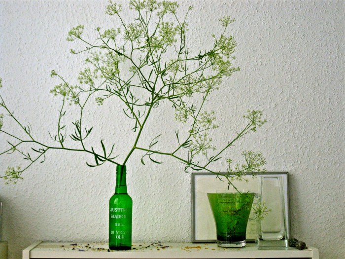 Danke für das „schöne Arrangement“ – ich hatte mich leider beim Bewegen in meiner Wohnung (jaja, kommt vor) oft in dem pittoresken Gestrüpp verfangen. Das ist jetzt weg. Ein „Kollege“ hat jedoch in der Küche überlebt: Er steht höher, da komme ich selbst beim Rumwirbeln nicht dran.