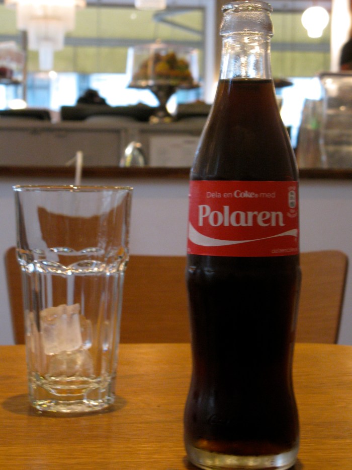 wurde sie aus der Taufe gehoben, beziehungsweise patentiert, wie für neue Gegenstände üblich. Etwas runder in den Hüften und gedrungener (hej, unsere Modells messen mittlerweile auch einsneunzig und haben kaum noch Kurven) – die gläserne Coca-Cola-Flasche. Schön ist sie bis heute. Warum auf diesem schwedischen Exemplar „Polaren“ steht, konnte ich nicht herausfinden. Immerhin gab es zwei Eiswürfel dazu. Auf der Originalflasche stand Coca-Cola. Ins Glas gepresst. Die rote Banderole kam wohl erst später. Aber egal, ob Polaren, Mezut Özil oder Knut draufsteht, die Flasche zeigt an, was drin ist, so braun wie Nutella und eine ebenso heftige Kindheitserinnerung.