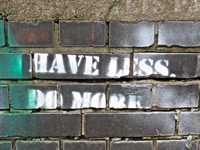 Weniger haben heißt vor allem, weniger haben wollen. Lange wollte ich mehr. Bis einmal der Groschen fiel. Ich hatte gerade Geld, hätte mir was kaufen können – und wollte nicht. Später konnte ich diese Unlust wiederholen, wenn ich gerade kein Geld zur Hand hatte. Es fühlte sich gut an. – Mehr tun heißt oft, mehr zu wagen. Lange wollte ich zu wenig. Oder traute mich einfach nicht. Denn mehr Tun zieht auch mehr Scheitern nach sich. Ja, auch hier: Fühlt sich gut an. Mein guter Vorsatz für Weihnachten und das neue Jahr: Have less, do more.
