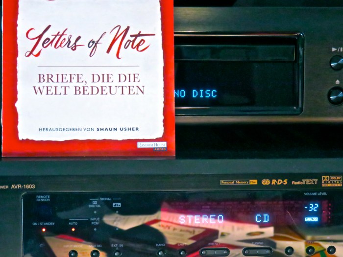 Die Auswahl ist bunt gemischt – einerseits – andererseits sehr auf den englischsprachigen Raum beschränkt. Was mich zunächst nicht verstimmt hat, aber bei einer Sammlung die den Untertitel „Briefe, die die Welt bedeuten“ trägt, hätte ein weiterer Radius besser gepasst. Bunt gemischt bezieht sich auch auf die Reihenfolge. Denn die ist weder chronologisch, noch thematisch, auch wenn man meint, zwischen dem einen und dem nächsten Brief eine – wenn oft auch nur kleine – Parallele zu finden. Zuerst fand ich es verwirrend (später habe ich mich daran gewöhnt), dass die Briefvorleser auch die jeweilige Einleitung sprechen, in der die schreibende Person und die jeweiligen Umstände, die zu dem Brief führen, erläutert werden. Ich hätte vielleicht doch auf die konventionellere Form zurückgegriffen, eine/n eigene/n „Einleitungssprecher/in“ zu nehmen und die Briefe dann quasi als „O-Ton“ zu bringen, zumal sich die Sprecher/innen wiederholen und für ganz verschiedene Personen herhalten müssen.