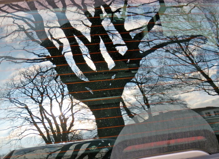 Und noch einmal die Frage, wie sie am besten zu fotografieren sind. Als Spiegelungen vielleicht, dachte ich heute. Denn in der Reflexion bekommen sie so eine luftige Beweglichkeit, die mir gefällt und den Wesen im Winter so eine tänzerische Leichtigkeit gibt (na, jedenfalls in meinem Kopf – oder bei argem Sturm). Erleben sie was? Wenn sie da so stehen und stehen und stehen. Oder ist es weniger ein Stehen als ein Verbinden von Himmel und Erde, mehr so ein Ausstrecken in dem Fall, ein nach oben und unten ausgreifen? Kann man etwas sehen? Aber so oder so: beeindruckende Gesellen!