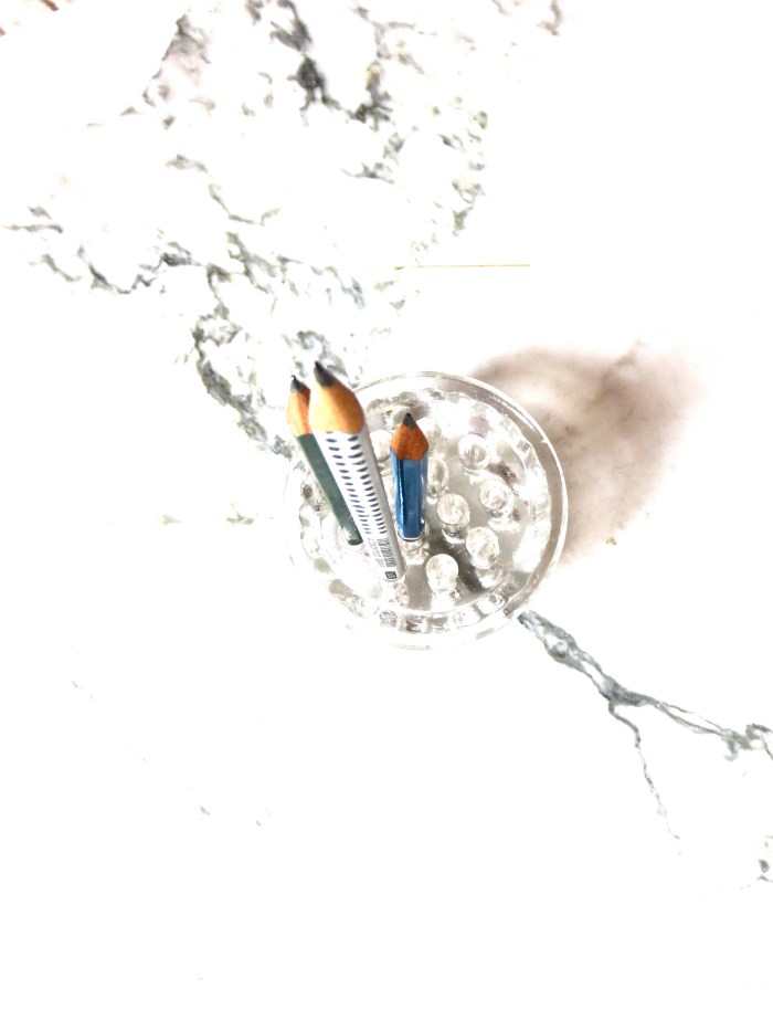 Ich liebe Bleistifte, aber nur die richtigen aus Holz, die so gut riechen, wenn man sie anspitzt, und nicht diese lieblosen Druckbleistifte, die den Charme eines Kugelschreibers haben – nämlich überhaupt keinen. Mit Bleistift mache ich mir Notizen in Bücher oder kritzle in meinen Terminkalender. Richtig schön finde ich sie eigentlich erst, wenn sie schon ein wenig runtergespitzt und klein sind 😉 Auch ich habe neulich ein paar Relikte aus meiner Kindheit gefunden, denn irgendwie kann ich mich von Schreibutensilien so schwer trennen – keine Ahnung, woher das kommt. Unter anderem fand ich einen Radiergummi, den ich noch aus Grundschulzeiten hatte. Steinhart ist er, radiert natürlich auch nicht mehr, aber wegschmeißen konnte ich ihn trotzdem nicht – nimmt ja auch nicht viel Stauraum ein und erinnert mich an die wohl schönste Zeit meines Lebens 😉
