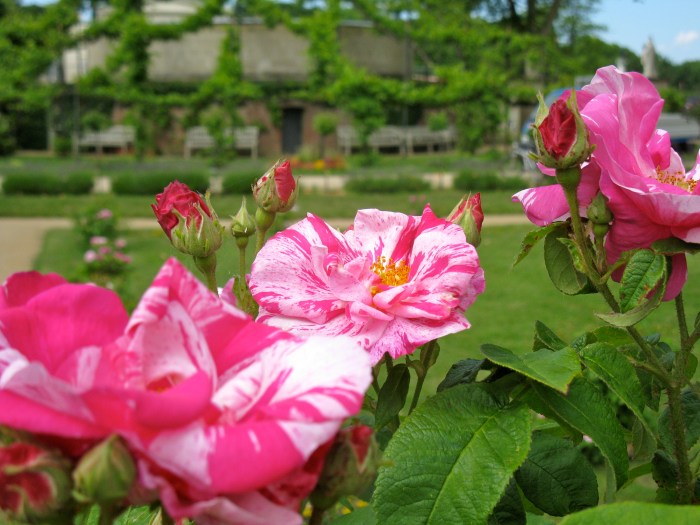 Diese hier wachsen im Park von Sanssouci. Sie sehen wie eine kostbare und vor allem köstliche Nachspeise aus oder wie eine Kreuzung der beiden Rosenbüsche von Schneeweißchen und Rosenrot. Vielleicht waren die Rosen das Einzige, was sich meine Oma an arbeitstechnischem Luxus leistete. Sie war vierfache Mutter und musste den Krieg weitgehend ohne meinen Opa überstehen. Sie war als junge Frau und auch später wieder, als es im Wirtschaftswunderland stracks in den Wohlstand ging, stets berufstätig gewesen. Hausarbeit mochte sie nicht besonders, erledigte aber selbstverständlich ihre Pflichten. Als sie in Rente ging, hatte sie keine Hobbys. Sie freute sich über ihre Enkelkinder und darüber, nicht mehr in so einen engen Zeittakt eingespannt zu sein. Sie ging gerne wandern und in den Ferien wurde gereist. Am liebsten in die Berge. Kein Handschlag zu viel. Das war ihr schönstes Geschenk im Alter. Und die Rosen.