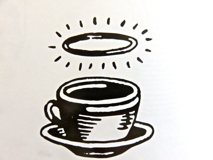 Die Kaffeetasse mit Heiligenschein ist ein Markenlogo, das ich mir blöderweise nicht notiert habe. Toll, oder!?