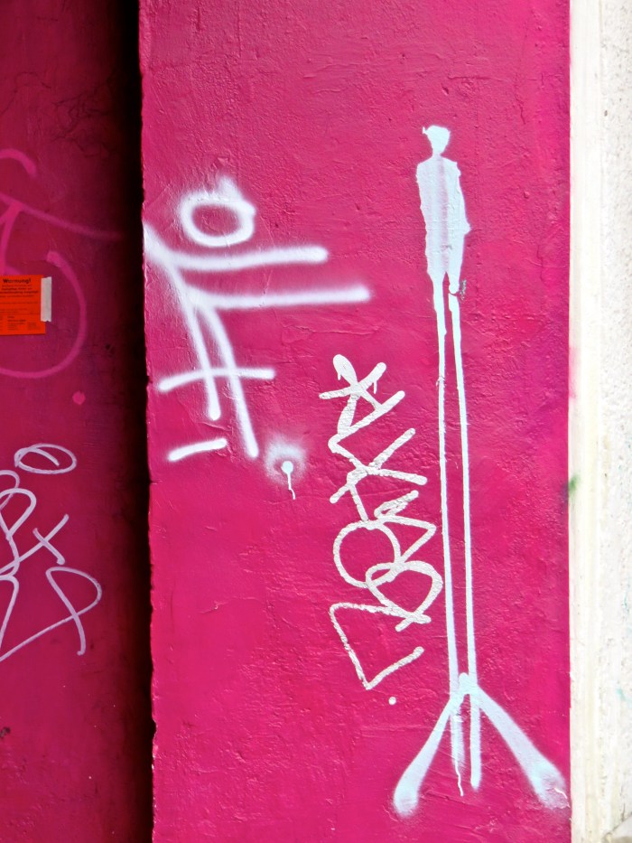 Bei Proust ist gerade dieses Bild eins für das Altern durch die Jahrzehnte hindurch, wo die Füße im weit entfernten Geburtsjahr stehen, während Kopf und Körper in die Zukunft streben. Insofern wachsen wir alle über uns hinaus und manche weiter, als sie eigentlich wollen, die Müdigkeit mancher Menschen im Alter spricht Bände. Im engeren Sinn wachsen wir aber nur dann über uns hinaus, wenn die Hindernisse, die auf unserem Weg liegen, so groß sind, dass wir gar keine andere Wahl haben. Das kann wohl auch schon mal Yoga sein, dort nämlich habe ich diese schnell hingesprühte Silhouette eines in den Himmel gewachsenen Menschen gesehen. Ob das ein Zeichen war?