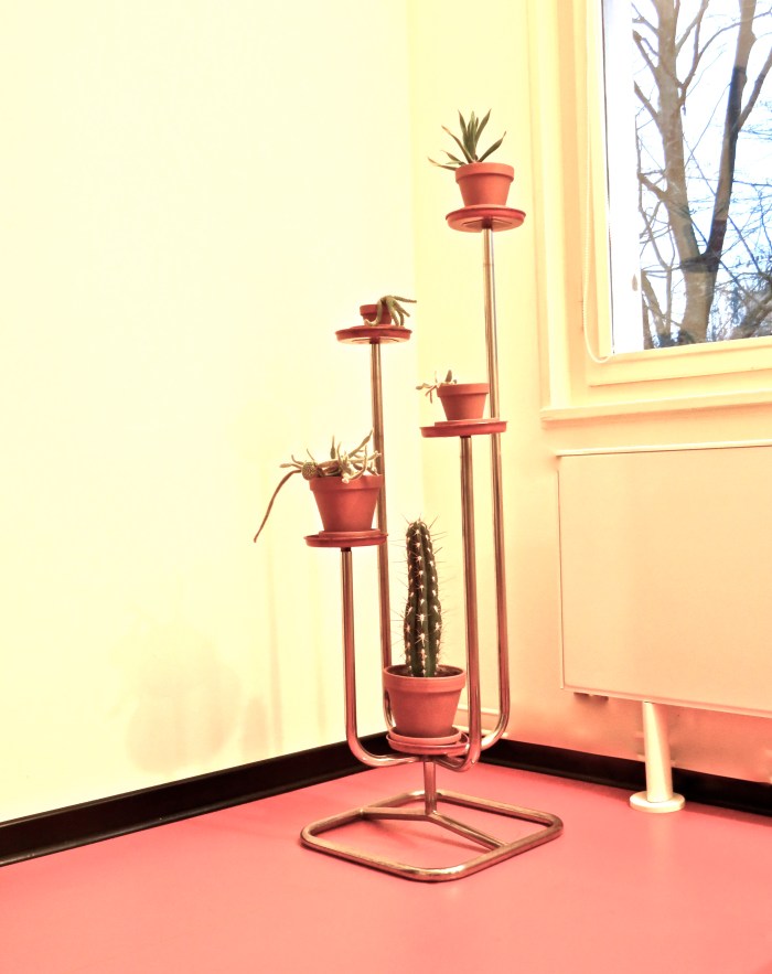 Doch, ja, ich gebe es zu: als ich diesen Blumenständer sah, musste ich laut lachen. Form follows function, der Schlachtruf moderner Architekt/innen schoss mir durch den Kopf und machte alles nur noch lustiger. Gesehen habe ich ihn letzte Woche bei meinem Ausflug nach Celle, er steht in einem Haus nahe am Französischen Garten, das Otto Haesler 1930/31 für den damaligen Direktor des Celler Gymnasiums gebaut hat.