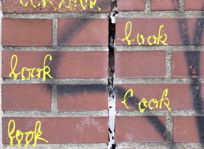 Ja, sehr witzig – und schön, dass du es gesehen und die Gelegenheit zum Lachen genutzt hast. Ich finde es auch irgendwie „ironisch“, wie ordentlich und korrekt die Schriftzüge in das Raster der Mauer eingepasst sind.