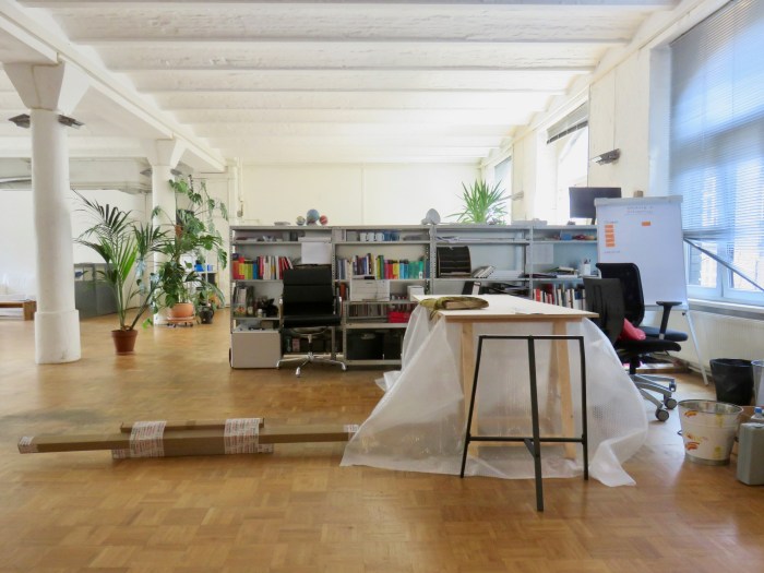 Im Büro ist eine neue Einrichtung fällig. Meine beiden Kolleginnen und ich, Nutzerinnen einer gemeinsamen „Koje“, müssen Tische besorgen. Und? Drei Frauen, drei Tische, drei Herangehensweisen. Soweit, so undramatisch. Was mir auffiel, dass mir ein Büro eher eine Art Transitraum ist. Ich komme dort mehrmals die Woche hin, um zu arbeiten. Während andere eher ein zu-Hause-Gefühl haben, das heißt, das Büro ist für sie eine Art ausgelagerter Wohnungsteil. Unterschied: Mir ist es eher egal, auf was für einem Tisch ich im Büro arbeite. Andere haben da höhere Ansprüche. Natürlich lässt sich das lösen. Wir sind von der ursprünglichen Idee abgekommen, ein Modell für uns alle zu besorgen. Statt dessen haben wir uns auf die nötigen Maße geeinigt. Mittlerweile steht mein Tisch, der auf dem Foto noch – zumindest das Untergestell – verpackt zu sehen ist. Morgen ist mein erster Tag mit/auf neuem Tisch. Ich bin gespannt.
