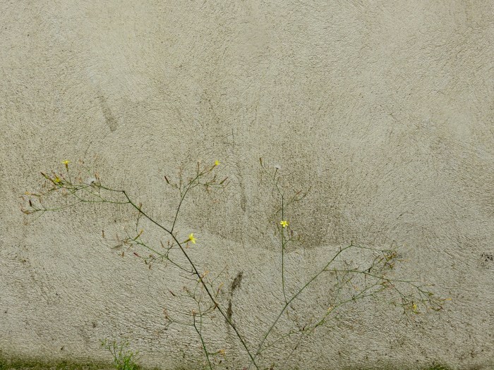 An manchen Tagen hat man wenig Spielraum. Oder das Gefühl, von allen Seiten bedrängt zu werden. Wer frei sein will, muss mit Widerstand rechnen. Und Enge aushalten. Es wird schon wieder einen Ausgang geben. Denke ich und dann sehe ich so ein kleines Unkraut an der Hauswand mit leuchtend gelben Köpfchen (wo ich meinen doch gerade hängen lassen will). Alles klar?