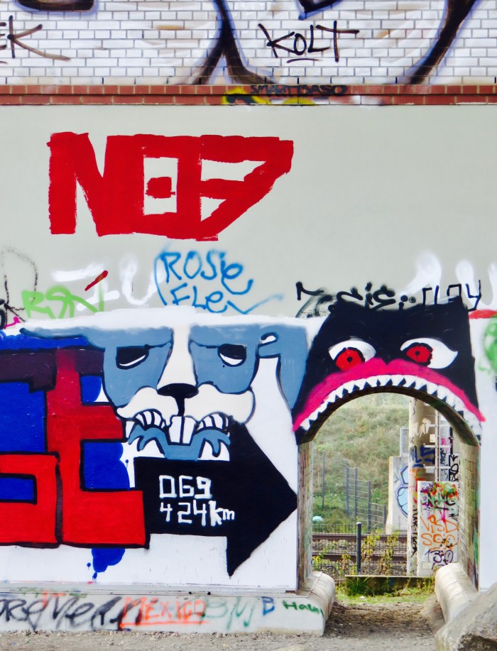So eine Drachentür wünsche ich mir schon lange. Eine, durch die man am Sonntag Abend verschwinden kann. Um dem Montag ein Schnippchen zu schlagen. Und diese ist gar nicht weit von meinem Zuhause, im Berliner Gleisdreieckpark. Allerdings muss ich jetzt schon die Taschenlampe mitnehmen. Denn es ist längst dunkel. Mal sehen, wer sich dort alles rumdrückt. Hoffentlich muss ich nicht auch noch Schlange stehen!