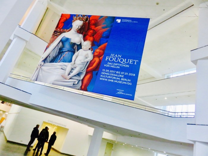 Ich gebe es zu, ich bin versehentlich hineingeraten. In diesen kleinen abgedunkelten Raum in der Berliner Gemäldegalerie, in dem zur Zeit beide Teile des Melun-Diptychons von Jean Fouquet zu sehen sind. Ursprünglich ein Altarbild, wurden sie im 18. Jahrhundert getrennt verkauft und sind heute in Berlin und Antwerpen ausgestellt.