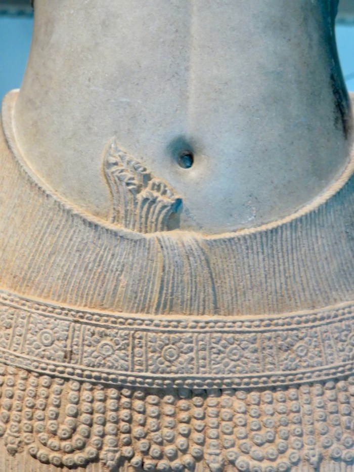 Klar ist: ein Ideal schert alle über einen Kamm. Und ebenso klar, zumindest, wenn wir Winckelmann folgen: ein Ideal ist per se nie zu erreichen. Insofern ist mir die barocke Zeit sympathischer. Es ging ausgelassener in der Mode zu und phantasievoller. Zumal auch Männer sich noch schmücken durften. Dennoch, die „klare Linie“ scheint auch etwas zu sein, was Menschen seit eh und je und rund um den Erdball begeistert. Das Foto habe ich im Asian Art Museum in San Francisco gemacht. Und leider nicht notiert, wessen wundervollen Bauchnabel wir hier sehen. „Edle Einfalt, stille Größe“ – Winckelmann hätte sicher seine Freude gehabt!