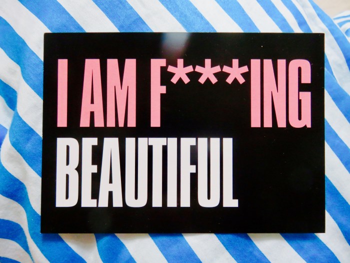 Vielleicht ist es das lange Training, denn ich weiß, dass Schönheit nur im eigenen Blick liegt. Schließlich habe ich mich nie in Topmodells verliebt und auch meine Freund/innen finde ich allesamt schön. Dass es kein plötzliches Umschalten ist, weiß ich. Aber ob der Schalter jetzt so liegen bleibt, ist abzuwarten. Schon lange habe ich mich auf diesen Moment vorbereitet. Denn im Grunde war ich es leid, mich ohne Idealmaße automatisch minderwertig zu fühlen. Es gibt ein schönes Lied von Jamila Woods mit dem Titel „Holy“, der fängt dieses Vergnügen mit sich selbst sehr schön ein.„Woke up this morning with my mind set on loving me…“ lautet die erste Zeile. In diesem Sinne…