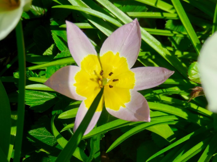 Das können Tulpen wirklich nur, wenn sie mit ihren Wurzeln noch in der Erde stecken: die Blütenblätter so weit strecken, dass sie waagerecht stehen und das Innere eine zweite Farbe preisgibt. „Mehr Hingabe“ hat jemand auf den Eingang des Friedhofs gesprüht, auf dem diese Tulpe ein Familiengrab ziert. Man hat den Eindruck, dass sie zumindest sich alle Mühe gibt.