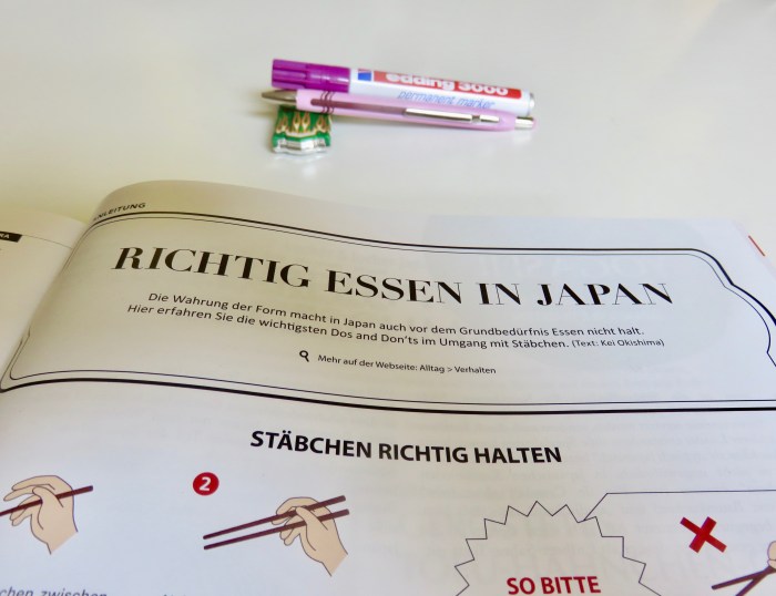 Hui, wurde das essen mit Stäbchen bereits mit Edding und Kugelschreiber geübt? 🙂