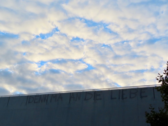 So gesehen auf (ja) dem Berliner Bahnhof Südkreuz. Für meinen Geschmack noch ein bisschen versteckt. Würden wir öfter dran denken, hach, das könnte fast wie Urlaub im Alltag werden. Dreimal weniger Streit. Mindestens. Einen herzlichen Dank an den Himmel – der den perfekten Hintergrund gezaubert hat.