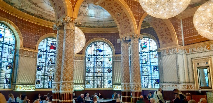 Das ist vermutlich nicht das Erste, was den meisten zum Londoner Victoria & Albert Museum einfällt, aber ich schwöre: Es gibt fantastische Kuchen! Und im ältesten Museumscafé der Welt schmecken sie nochmal so gut. Was soll ich sagen? Die Reise war von der ersten Minute an (nein, erst von der ersten Minute jenseits des BER) ein Glücksfall und wirklich das Beste, was mir seit Monaten eingefallen war. Einfach mal weg. Das sagt sich leicht, und lässt sich noch leichter wieder beiseite schieben. Dann aber doch den Mumm haben, zu buchen und zu fahren. Und das Schreibtischchaos einfach mal Schreibtischchaos sein zu lassen, fiel mir zumindest nicht so leicht. Wurde aber belohnt. Mit tollen Eindrücken, aber auch – einmal mehr – mit neuen Facetten, die ich an mir entdeckt habe. Und jetzt scheint endlich auch in Berlin die Sonne, wir haben heute unseren mittäglichen Kaffeetreff im Hof wieder eröffnet, und die Arbeit ist zwar nicht weniger geworden, geht mir aber deutlich leichter von der Hand.